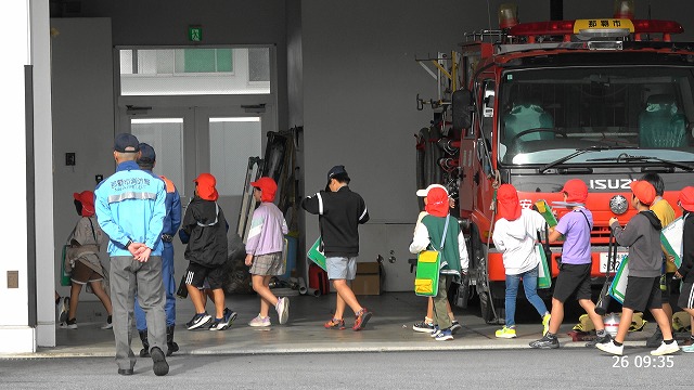 先日、那覇市消防局神原消防署に小学生が社会見学に来ていました。火遊びをしないように!火事の怖さを教えられたようです。